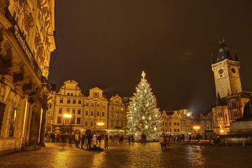Rozzářený vánoční strom na Staroměstském náměstí v Praze
